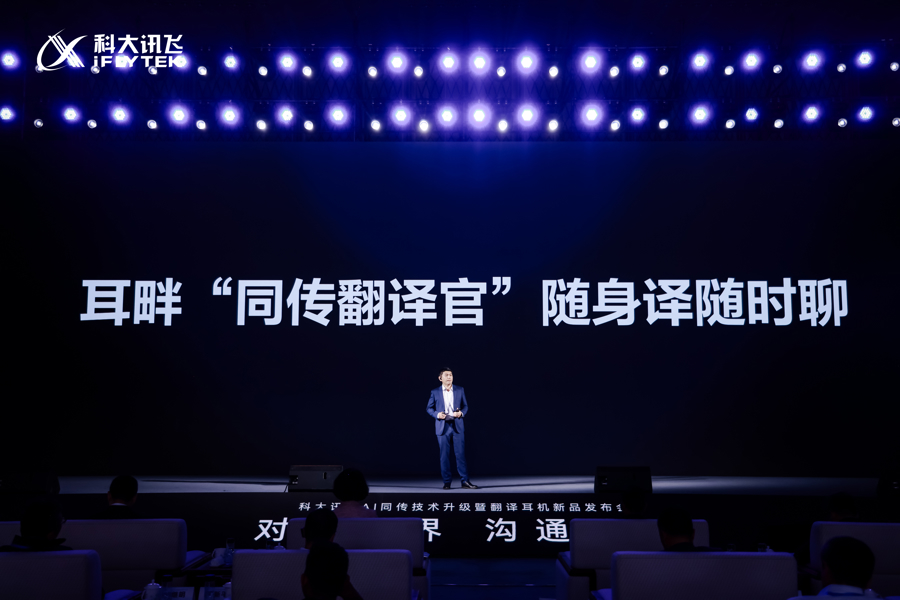 发布会上推出的新一代讯飞AI翻译耳机,率先搭载了最新的端到端语音同传技术,在线支持60种语言的同传互译,相比同类产品实现了更准确、更速度、更自然的翻译体验。
